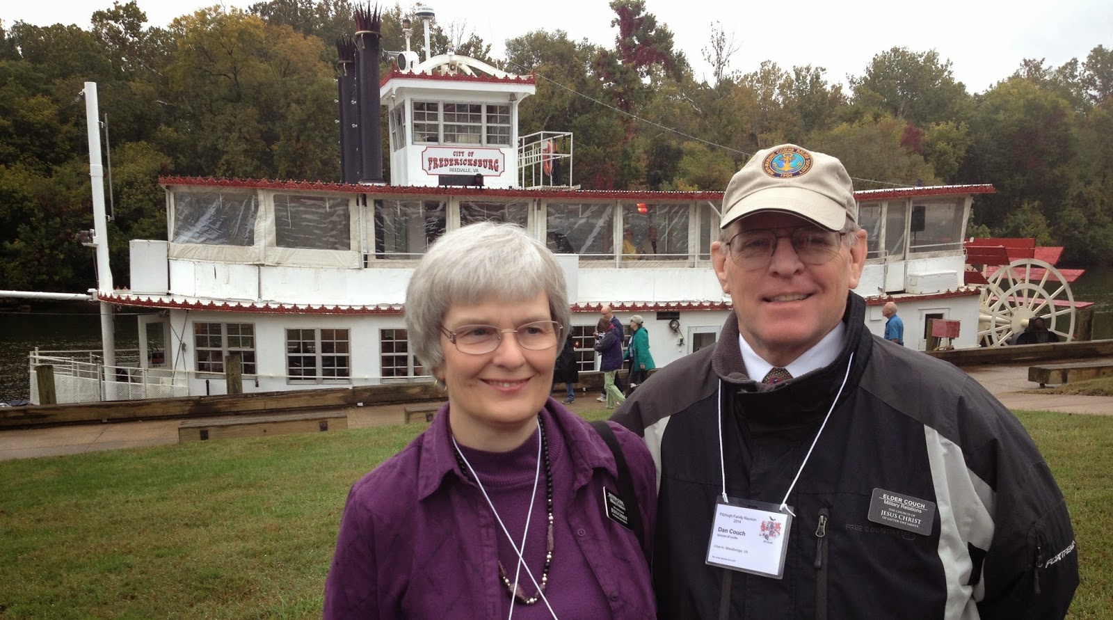 a fruit plate, and a lesson for our Sunday morning OCS service. But we got it all done. Below are photos of all the Fitzhugh cousins at Chatham and of us in front of the riverboat.